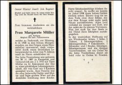 Herzanfall; ∞ 2.2.1910 Theo Müller, † 1938; 5 K.; 2 Söhne im 2. Weltkrieg gefallen; |