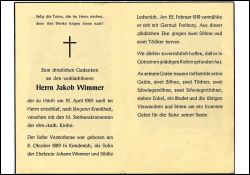 Eltern: Johann Wimmer u. Sibille geb. Lechenich; ∞ 22.2.1919 Gertrud Freiburg; 4 K. |