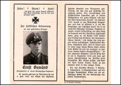 Gefallener 2. Weltkrieg; Eltern: Johann Gemünd u. Margareta geb. Virnich; Febr. 1941 Einberufung zur Wehrmacht; Okt. 1941 als Gebirgsjäger an Ostfront; 1 J. Lazarett wegen ernster Erkrankung; Herbst 1943 wieder an Ostfront; Ehrenfriedhof bei Perikop |