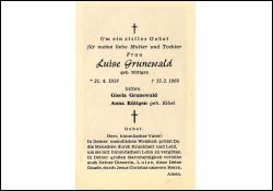Hinterbliebene: Tochter: Gisela Grunewald; Mutter: Anna Rüttgen geb. Eibel |