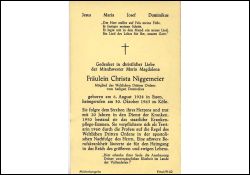 Mitgl. 3. Orden hl. Dominikus (Schwester Maria Magdalena); 1950 Krankenpflege-Examen; Profess als Tertiarin 1960; schwere Berufskrankheit |