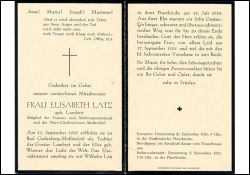 Mitgl. Frauen- u. Müttergemeinschaft; Pfarr-Cäcilienchor Muffendorf; Eltern: Gustav Lambert u. Elise geb. Wunner; ∞ 15.7.1933 Wilhelm Latz; 1 Sohn, Gustav; langes Leiden; Wohnort: Muffendorf |