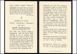 Amtsgerichtsrat a.D.; Eltern: Joseph Adalbert Gednorozec u. Betty geb. Stolz; Studium Uni Prag; ∞ 15.11.1932 in Karlsbad Marie-Helene Hartmann; half in der NS-Zeit Priestern, Gefangene in Gefängnissen zu besuchen; trat Übergriffen der Nazis entgegen; langjähriges Leiden |