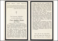 Mitgl. Frauen- u. Mütterverein; lange, schwere Krankheit, ganz ans Haus gefesselt; ∞ 27.8.1913 Josef Brems; 3 K.; |