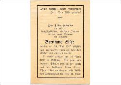 Schüler; Tod durch tragisches Geschick; Ostern 1944 Erstkommunion; musste im gleichen Kriegsjahr mit seinen Angehörigen die Heimat verlassen; beerdigt zu Hasberg |