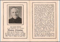 Eltern: Ignaz Schweitzer u. Katharina geb. von Coellen; Kaiser-Karl-Gymnasium in Aachen; Prietserweihe 28.3.1903 Köln; 6 J. Kaplan in Essen, Münsterkirche, nebenamtlich Gefängnisseelsorger; dann 10 J. Religionslehrer an Luisenschule u. Lehrerinnenseminar in Essen; 3.5.1919 Pfarrer in Bedburg; 8.4.1929 Pfarrer an St. Mauritius in Köln; im Krieg Kirche u. Pfarrhaus zerstört, Pfarrei fast entvölkert; Ende Januar 1945 am Ende seiner Krtaft u. ins Krankenhaus nach Bensberg; nach 5 Wochen fand er dann brüderliche Aufnahme bei dem Pfarrer von Birk, Siegkreis (Anton Michels). |