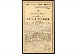 ∞ 1818 Wilhelm Dues, † nach 9 J.; ∞ 1828 Hermann Franken, † 9.3.1855; 5 Kinder aus der 2. Ehe starben, ebenso ein Enkel; |
