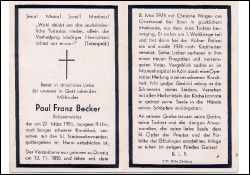 Polizeimeister; ∞ 8.5.1923 Christine Wirges aus Oberkassel b. Bonn; 1 Tochter; Soldat im 1. Weltkrieg; dann bei Kölner Polizei; 1934 nach Kirchherten versetzt; Operation führte nicht mehr zur Heilung |