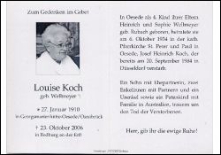 Eltern: Heinrich Wellmeyer u. Sophie geb. Rubach; ∞ 6.10.1934 in Oesede Josef Heinrich Koch, † 20.9.1984 in Düsseldorf; 1 überlebender Sohn |