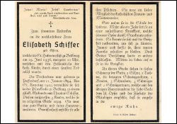 ∞ St. Annatag 1919 in Bedburg Theodor Schiffer; 3 K.; Mitgl. Frauen- u. Mütterverein; litt ein J. lang an unheilbarer Krankheit |