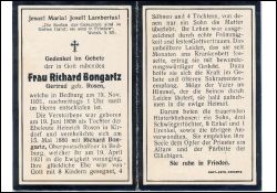 ∞ 15.5.1880 Richard Bongartz, Oberpostschaffner in Bedburg, † 19.4.1921; 8 K., davon 7 †; seit Monaten ans Krankenbett gefesselt; |