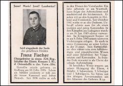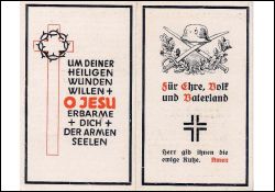 Gefallener 2. Weltkrieg; seit 1938 im Dienst des Vaterlandes; 1 J. am Westwall, dann Arbeitsdienst, anschließend Soldatenzeit: Holland u. Frankreich; seit Okt. 1941 Ostfront; 18.1.1943 schwer verwundet |