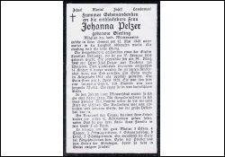 ∞ 29.3.1890 Peter Josef Pelzer aus Neuenhaus b. Würselen, † 5.4.1928; 14 K., davon 6 früh †, 1 Sohn im 1. Weltkrieg seit 1915 vermisst; leitete bis ins hohe Alter ihr Geschäft |