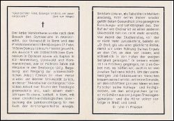 Tod auf Reise von Rom nach Salzburg; beigesetzt in Hüchelhoven; Gymnasium Münstereifel; Priesterweihe Köln 27.2.1936; Assistent am Erzb. Gymn. in Opladen u. Kaplan in Köln-Marienburg, Dünnwald und Rommerskirchen; 1944 Promotion Uni Bonn; Professor der Kirchengeschichte an der Universität Bonn; gleichzeitig Subsidiar in Mehlem; |
