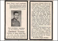Gefallener 2. Weltkrieg; ∞ 30.12.1939 Anna Maria Brosch aus Bedburg; deren Bruder im August 1942 gefallen; Druck in Bedburg |