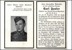 Gefallener 2. Weltkrieg; Eltern: Heinrich Fauler u. Anna Sofia geb. Zöller; Februar 1941 Einberufung; im Nov. 1941 im Osten verwundet; nach Genesung wieder an der südöstl. Front |