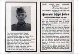 Gefallener 2. Weltkrieg; Eltern: Peter Felten u. Apollonia geb. Schmitz; 8.12.1942 Einberufung; gefallen bei schweren Kämpfen im Osten |