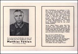 Gefallener 2. Weltkrieg; Eltern: Johann Fühlen u. Sibilla geb. Hoffmann; 4.11.1939 Einberufung |