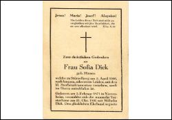 ∞ 31.10.1891 Wilhelm Dick; 5 K.; schmerzhaftes Leiden |