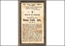 Lungenlähmung; ∞ 2.2.1847 in Sindorf Wilhelm Filz, † 9.5.1880; 2. Seite fehlt |