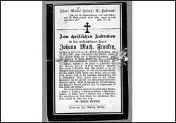 71 J.; 46 J. verh. mit Anna Catharina geb. Grechtmanns; 8 K., davon 5 †; viele Jahre als Sammler für Franziskus-Xaverius-Verein tätig; Druck in Willich |