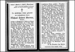 Rentner; Eltern: Peter Germes u. Josefa geb. Koenen; kaum 1 J. alt, starb der Vater; ∞ 3.11.1889 Helene Orth, † ; 3 K.; ∞ 5.8.1911 Katharina Kelzenberg; 3 überlebende Kinder |