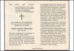 ∞ 17.1.1905 Peter Schneider aus Niederbolheim; 7 K., davon 1 früh †; 1 Sohn im 2. Weltkrieg vermisst; Druck in Lechenich |