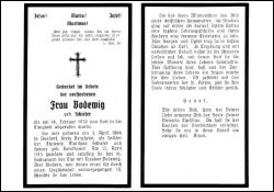 Eltern: Matthias Schiefer u. Helene geb. Bendheuer; ∞ 15.4.1913 Theodor Bodewig; 3 K.; in den letzten Monaten schwer leidend |
