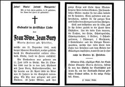 ∞ 25.10.1906 Jean Bury, Anstreichermeister, † 29.4.1909 mit 31 J. †; 2 K.; 33 J. Witwe (Brühl) |