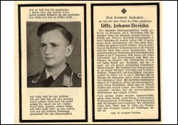Gefallener 2. Weltkrieg; Eltern: Joseph Derichs u. Sibilla geb. Wyrich; 2.12.1938 Einberufung; ∞ Okt. 1940 Anna Roloff aus Holzheim; Ruhestätte in Troitzkoje, 40 km von Krementschug |