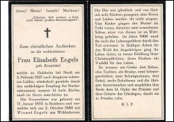 Längeres schweres Leiden; ∞ 2.10.1880 Winand Engels aus Widdeshoven; 8 K., davon 4 †, darunter 2 erwachsene Söhne, einer im 1. Weltkrieg gefallen; |