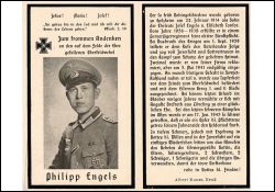Gefallener 2. Weltkrieg; Eltern: Josef Engels u. Elisabeth geb. Tonsor; Einberufung 1.9.1939; zweimal von seiner Firma reklamiert; 3.5.1941 endgültig eingezogen (Russland); bei letztem Urlaub im Okt. 1942 ∞ Auguste Grefrath aus Löveling |