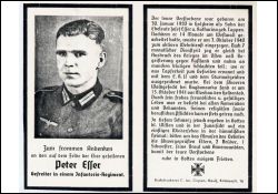 Gefallener 2. Weltkrieg; Eltern: Josef Esser u. Katharina geb. Tappen; nach 14 Monaten Westwall Einberufung am 3.10.1940; schweres Waldgefecht b. Bagdanowka; verlobt |