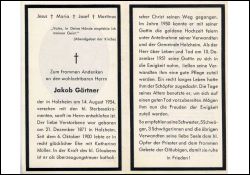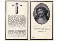 ∞ 6.10.1900 Katharina Müller, † 10.12.1951; 1950 Goldhochzeit; nach dem Tod der Gattin Pflege durch Verwandte |