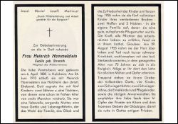 Mitgl. Mütterverein; ∞ 24.6.1910 Heinrich Hammelstein aus Holzheim; 5 K., davon 1 früh †; 1926 nahm sie die 5 vollwaisen Kinder ihres verstorbenen Bruders in die eigene Familie auf; aus Holzheim |