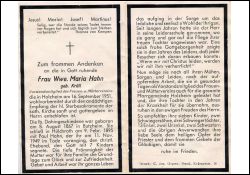 ∞ 9.2.1895 in Hülchrath Paul Hahn, † 11.11.1949; 7 K.; seit Jahren auf die Pflege ihrer Tochter angewiesen; Mitgl. Frauen- u. Mütterverein |
