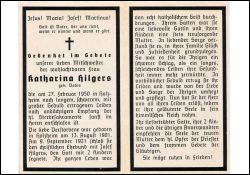 ∞ 9.9.1921 Josef Hilgers; 2 K.; langes, schleichendes Leiden; von den Ihrigen gepflegt |