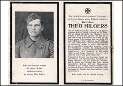 Gefallener 2. Weltkrieg; Eltern: Jakob Hilgers u. Cäcilie geb. Jansen; 2.10.1940 zur Wehrmacht; erst in Griechenland, dann Russland; Heldebfriedhof Etbuiskaja |