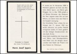 Eltern: Jakob Ippers u. Maria geb. Brüggen; ∞ 6.5.1933 Helene Schr∞ten; 3 Söhne, davon 1 †; schweres Leiden |