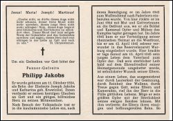 Gefallener 2. Weltkrieg; Eltern: Joseph Jakobs u. Katharina geb. Krawinkel; kaufmännische Lehre; 1942 Einberufung; 1944 an die Ostfront; 1945 an die Westfront; am 12.4.1945 schwer verwundet; vermutlich aus Holzheim |