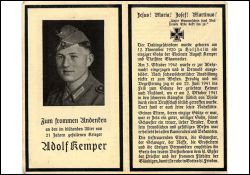 Gefallener 2. Weltkrieg; Eltern: August Kemper u. Christine geb. Glasmacher; 3.10.1940 zur Wehrmacht eingezogen; am 22.6.1941 nach Russland |