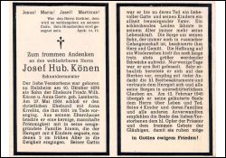 Eltern: Friedrich Wilhelm Könen u. Anna Gertrud geb. Lambertz; ∞ 27.5.1904 Anna Kivelitz, † 1931; 6 K., davon 2 früh †; schleichendes Leiden lähmte sein Alter; vermutlich aus Holzheim |
