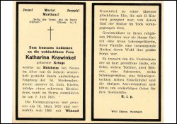 Schweres Herzleiden; ∞ 1892 Winand Krawinkel; 13 K., davon 5 †; |