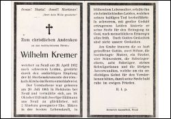 ∞ 19.10.1926 Josefine Rüßmann aus Neuss; 2 K.; heimtückisches Leiden; |