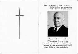Eltern: Matth. Schnitzler u. Maria-Anna geb. Arentz; ∞ 1907 Kunigunde Klein, Berrenrath (Ehe bis 1923); 3 K.; Tochter † 1957; Mitgl. Gemeinderat Gleuel u. Bürgermeistereirat Hürth; SPD; Ortsvorsteher Gleuel |