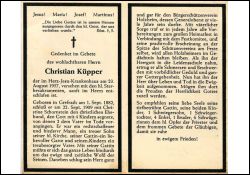 ∞ 22.9.1909 Christine Schornstein; 4 K., davon 2 †; Mitgl. Bürgerschützenverein Holzheim, viele Jahre dessen Generaloberst; schmerzhaftes Leiden |