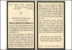 Eltern: Wilhelm Küppers u. Katharina geb. Schillings; ∞ 14.4.1934 Gertrud Krahwinkel; 2 K.; lange, schwere Krankheit |