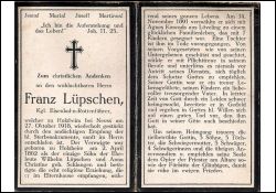 Einziger Sohn der Ehel. Wilhelm Lüpschen u. Anna Christine geb. Schlangen; ∞ 14.11.1891 Agnes Konrads (Conrads) aus Löveling; 7 K., davon 1 Tochter †; Kgl. Eisenbahn-Rottenführer; zuletzt schweres Leiden |