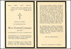 Vorstandsmitgl. Frauen- u. Mütterverein; ∞ 20.9.1905 Adam Hubert Lyrmann, † 6.4.1941; 4 K. |