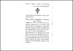 Mitgl. Frauen- u. Mütterkongregation; längeres Leiden |
